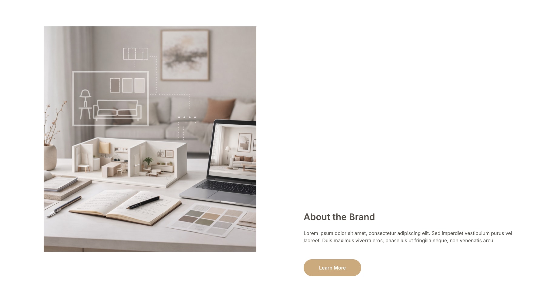 此區塊為圖文雙欄版型,一側呈現主視覺圖片,另一側包含標題、段落與行動按鈕,適合用於品牌介紹或重點內容說明,結構清楚、易於延伸應用。