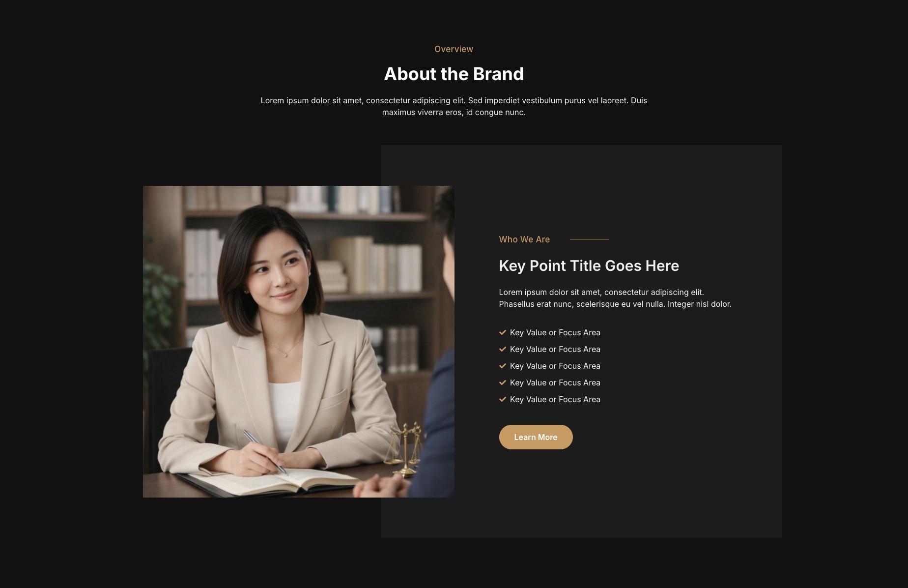 此區塊結合主視覺畫面與結構化條列內容,清楚傳達核心定位與關鍵價值,讓整體形象一目了然,適合用於品牌形象的重點摘要與初步介紹。