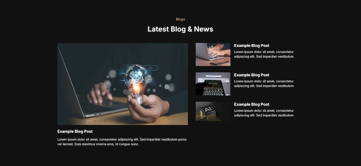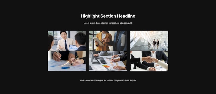 精選形象官網的內容區塊。匯入後輕鬆替換文字與圖片,就能快速組成屬於你的頁面。