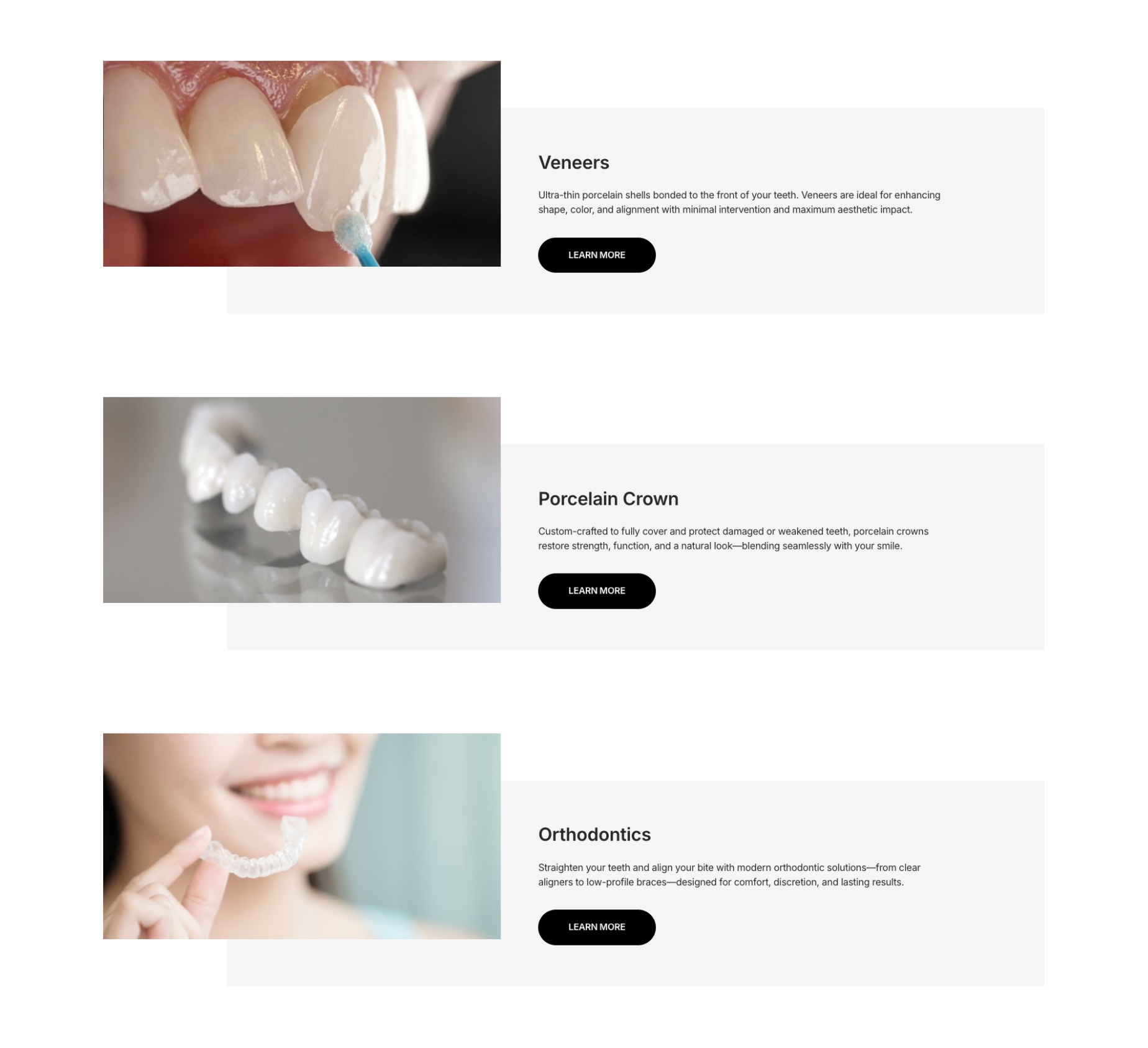 精選形象官網的內容區塊。匯入後輕鬆替換文字與圖片,就能快速組成屬於你的頁面。
