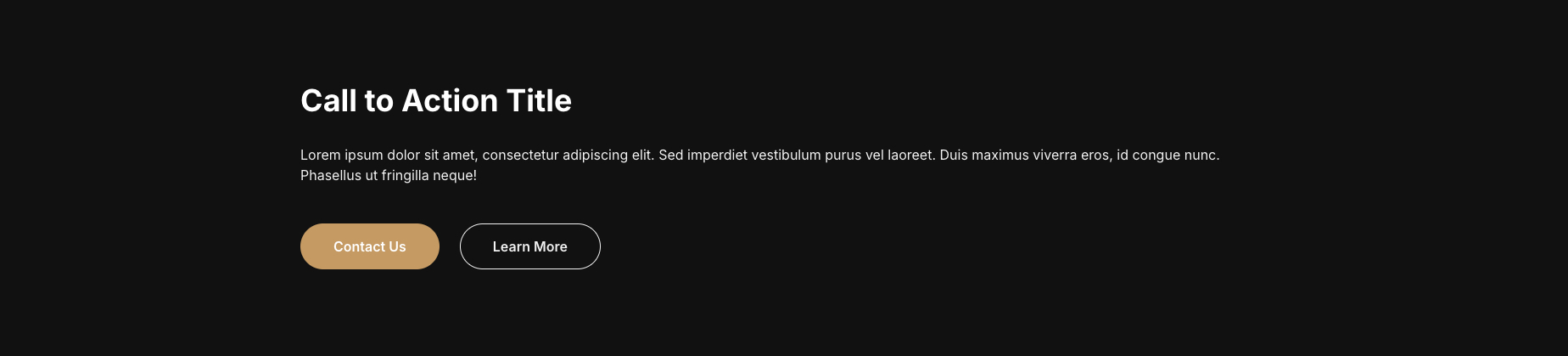此 CTA 版型為單欄結構,包含行動標題、說明文字與雙按鈕配置,適合用於頁面中段或結尾,引導使用者進一步了解或執行主要行動。