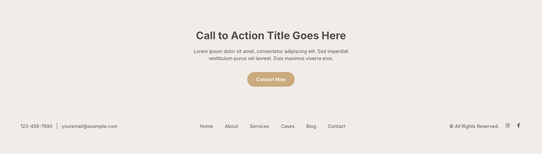 此頁尾版型於上方整合行動導向 CTA,強化轉換動線,下方保留聯絡資訊與導覽連結,適合作為頁面結尾的行動引導。