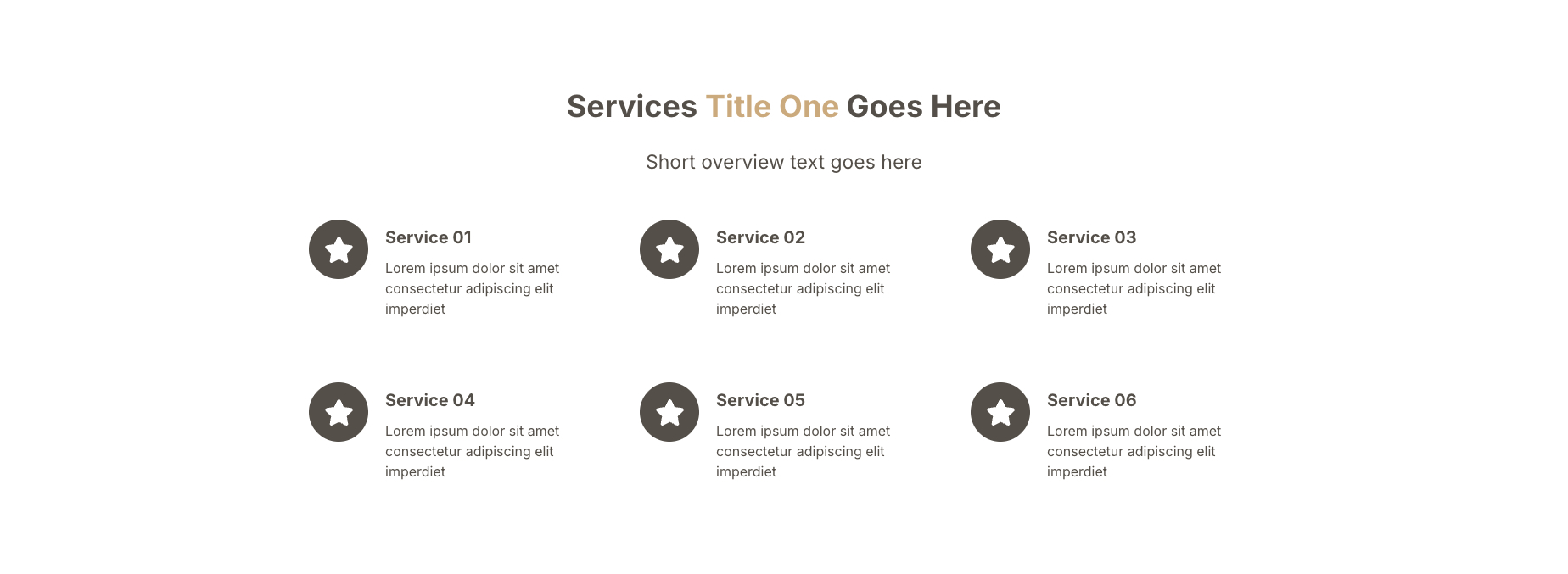 此服務區塊透過上方動態文字建立品牌語氣,下方排列多項服務模組,形成清晰的內容導覽結構,可作為首頁或關於頁的服務入口。