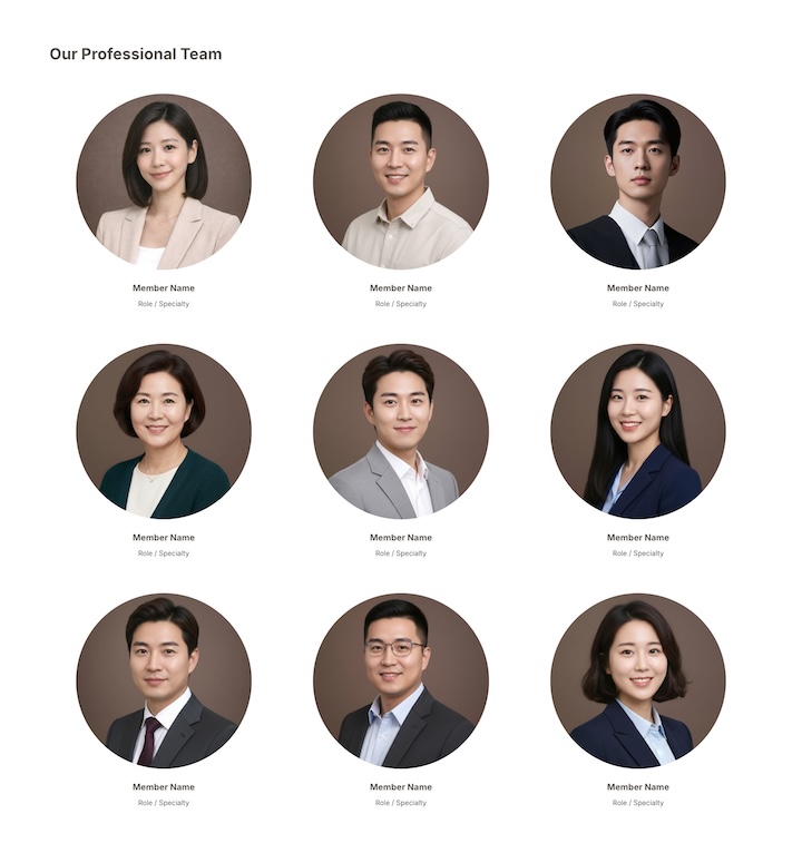精選形象官網的內容區塊。匯入後輕鬆替換文字與圖片,就能快速組成屬於你的頁面。
