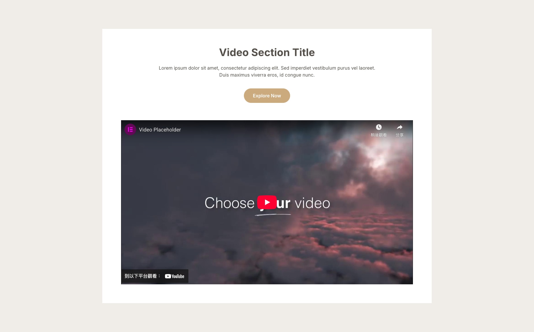 此影片版型以置中標題、導語與 CTA 搭配影片呈現,建立清晰操作動線,適用於首頁中段或引導行動的內容區。